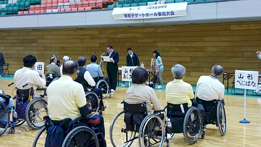 5月14日(土)、第25回目となる一関市長杯争奪 車椅子ゲートボール東北大会(主催:全国脊髄損傷者連合会岩手県支部)が、一関総合体育館メインアリーナを会場として開催されました。